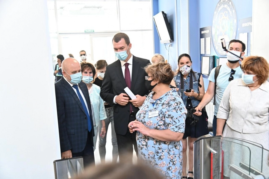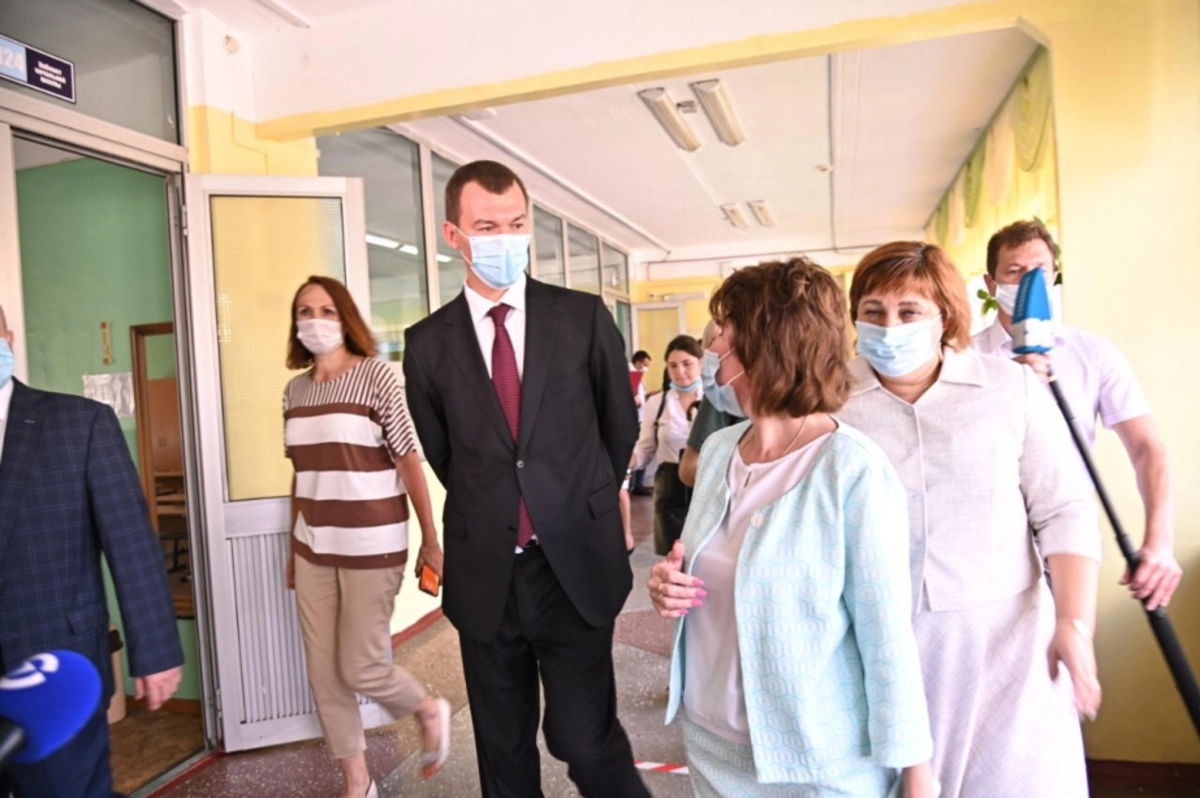 Руководители муниципальных властей, а также министр образования и науки региона Виктория Хлебникова доложили врио губернатора Хабаровского края Михаилу Дегтяреву о готовности учреждений образования к новому учебному году и показали несколько школ регионального центра.