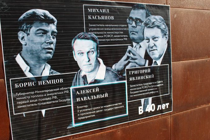 В Москве на территории завода «Флакон» неизвестные расклеили серию плакатов, на которых сравниваются карьерные достижения главы Фонда борьбы с коррупцией Алексея Навального и его бывших соратников по Демократической коалиции и «Яблоку» к сорока годам