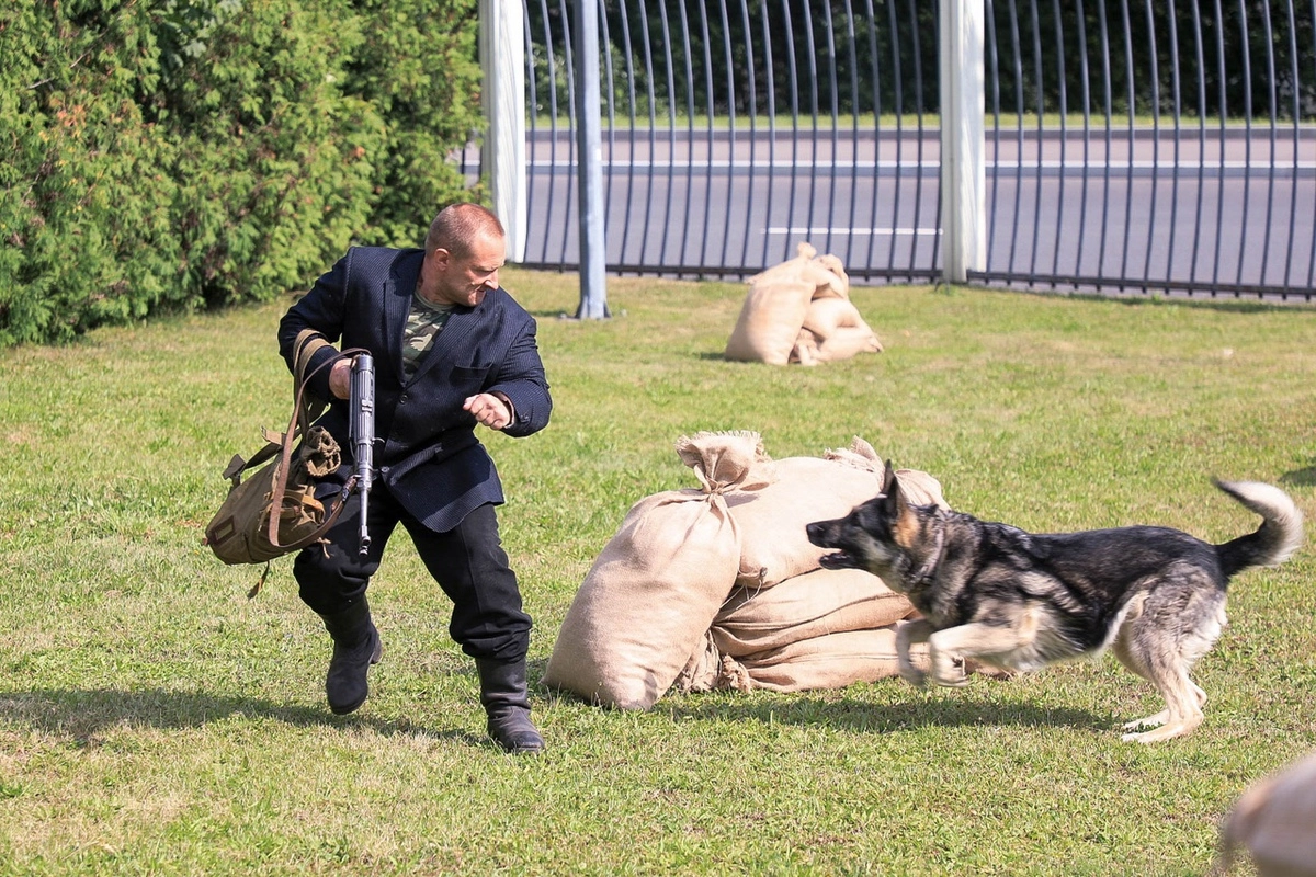 Подразделение Росгвардии со служебными собаками из кинологического учебного центра дивизии имени Феликса Дзержинского показали навыки специальной подготовки — задержание нарушителей и поиск взрывчатых веществ. Показательные выступления представили также кинологи ДОСААФ.