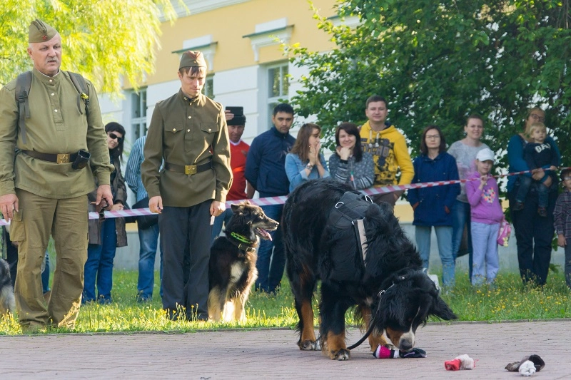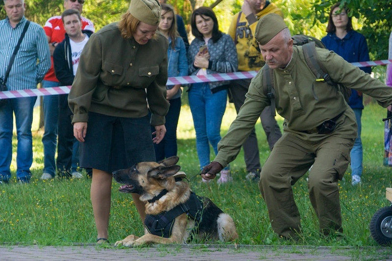 На открытой площадке музея зрители увидели ожившие страницы истории войны. Кинологи из клуба «Х Легион» и их питомцы реконструировали: подвиг легендарной овчарки Дины, которая сумела выжить, осуществив подрыв вражеского эшелона; задержание диверсантов на границе, спасение раненых и службу собак-разведчиков.