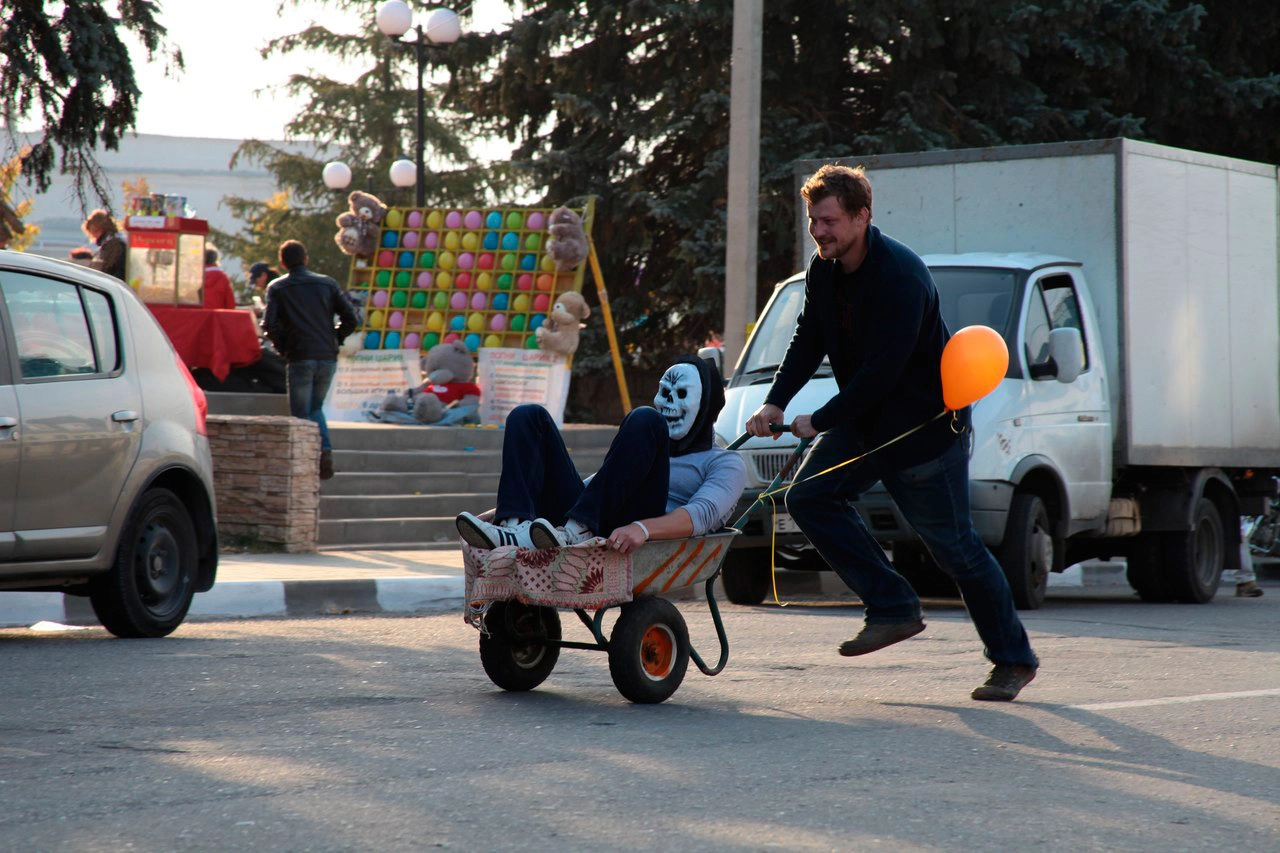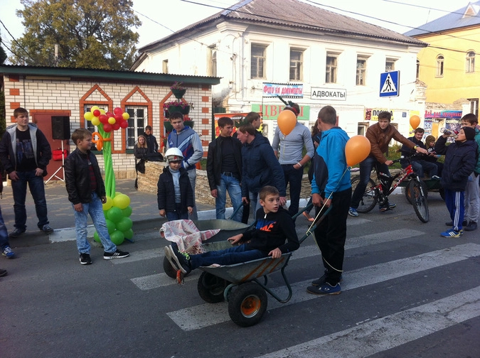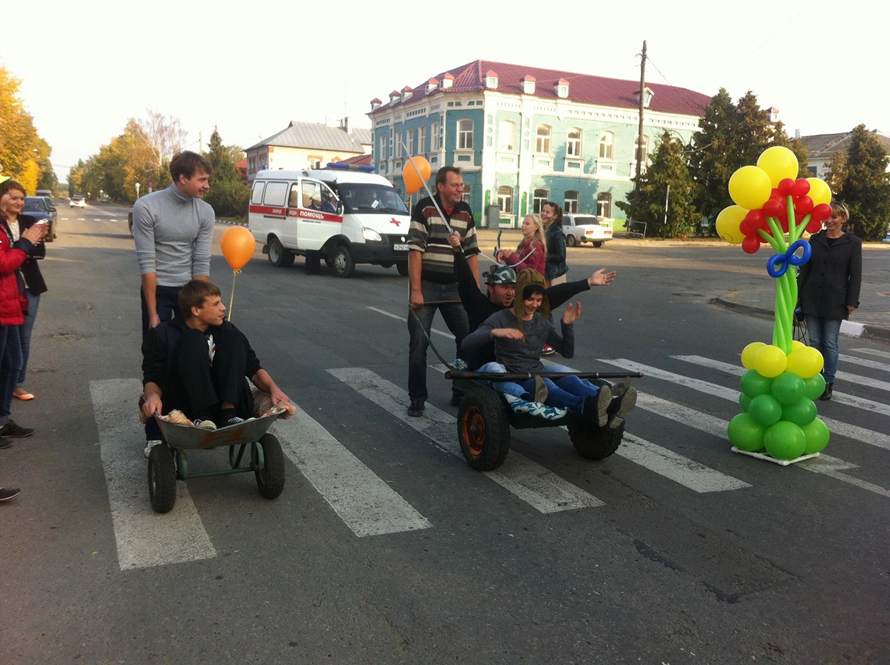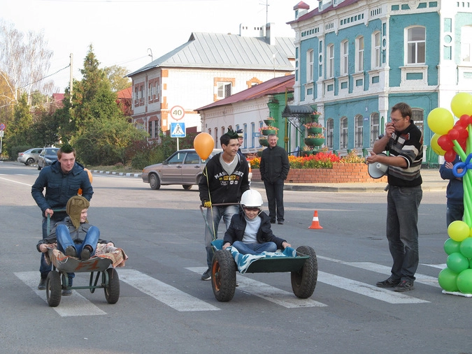 А в День города они решили позабавить горожан еще одной затеей — гонками на садовых тачках, приурочив акцию к дню города и символически отметив окончание сезона собра урожая. Тачки ребята из «Я выбираю!» собрали по дворам и выдавали всем желающим поучаствовать. На гонки можно было зарегистрироваться заранее, но не возбранялось записаться на заезды прямо перед стартом. В итоге на гонки набралось 8 команд из Задонска, села Донского и Липецка. Участникам предстояло на время и на перегонки преодолеть 50 метров дистанции по центральной улице города - Советской. Ради этого улицу перекрыли сотрудники ДПС а неподалеку расположилась бригада «скорой» - мало ли, гонка есть гонка, могут быть и травмированные. Гонки начались под всеобщий смех и подбадривание зрителей Конечно, не обошлось без мелких аварий и столкновений, сходов с дистанции, но в итоге все прошло благополучно, задорно и обошлось без травм.