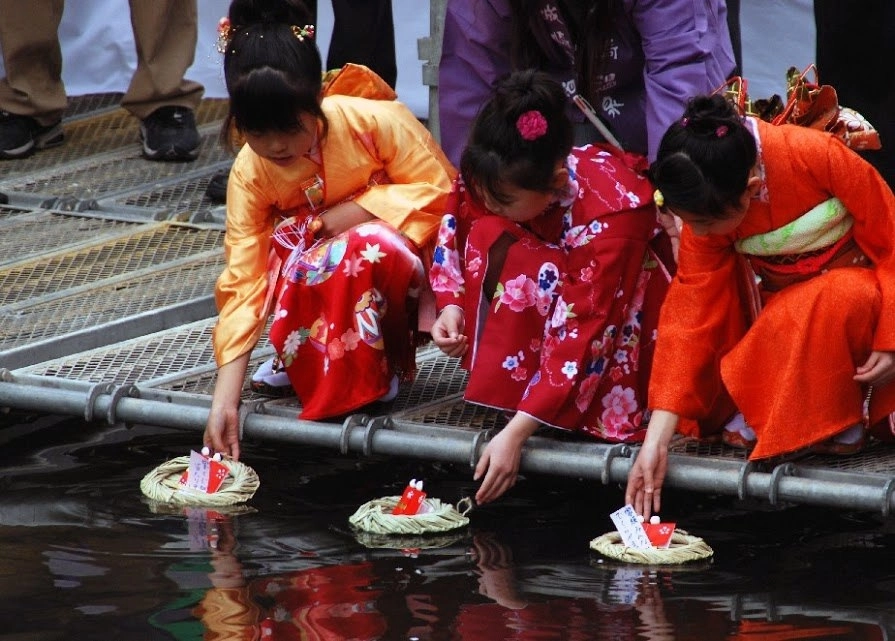 В этот день девочки надевают нарядные кимоно с цветочным рисунком, ходят в гости, дарят друг другу подарки, едят различные сладости.