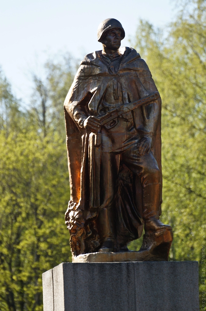 Далее мероприятия переместились к памятнику Героям фронта и тыла. Здесь ежегодно проходят торжества, связанные с празднованием Дня Победы. Начались мероприятия с захоронения останков неизвестного солдата у подножья памятника. Этой весной останки уроженцев Ивановской области, солдат 235-й стрелковой дивизии, были найдены псковскими поисковыми отрядами. По инициативе поисковиков и была создана Могила неизвестного солдата.