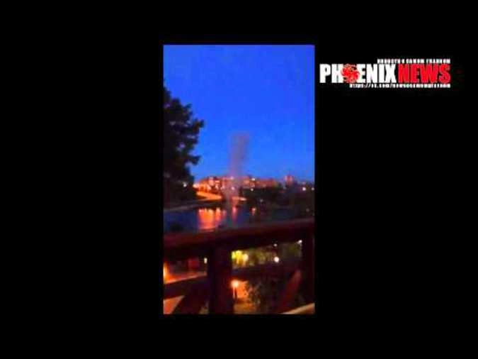 Донецк привыкает к свинцовому граду. Жительница города отмечала юбилей, когда начался обстрел. Гости праздника не стали прятаться по подвалам, а начали снимать происходящее на видео. Снаряды украинской артиллерии падали на реку, на мост и набережные.