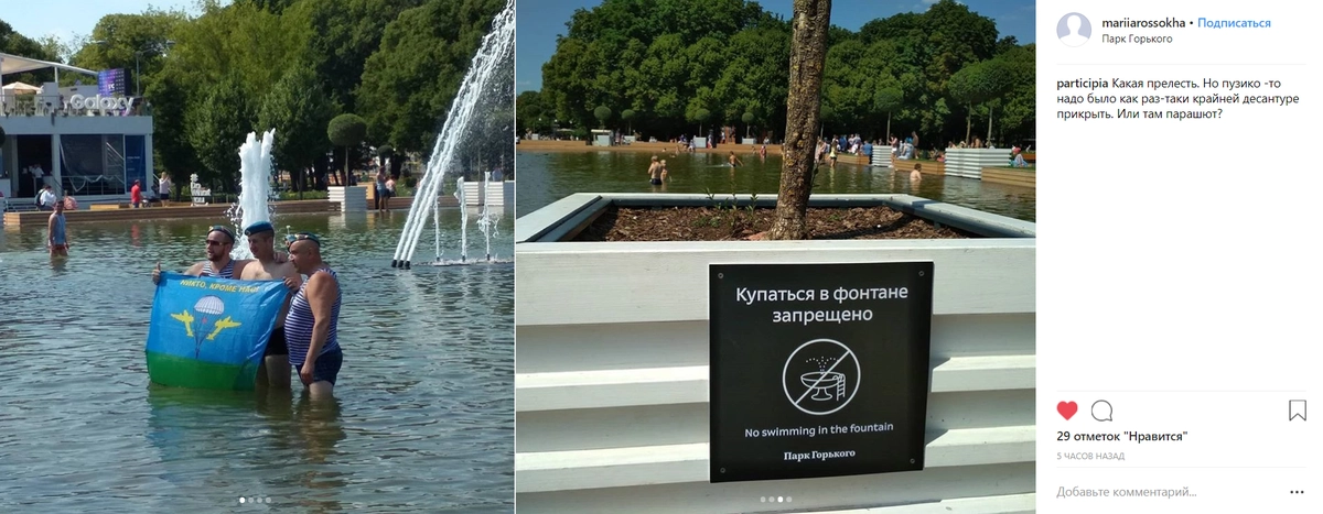 Разумеется, даже напоминание о запрете купания в фонтанах от Минкульта РФ десантников не остановило: