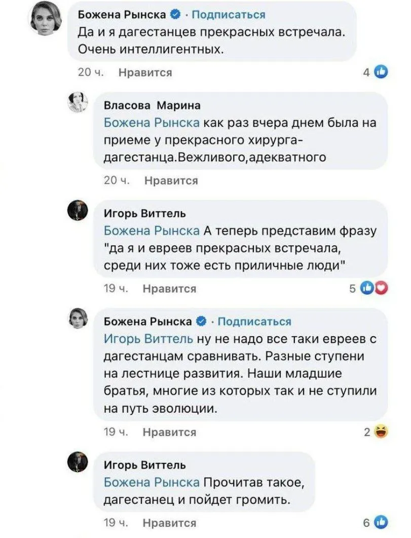 Депутат Госдумы от республики Дагестан Бийсултан Хамзаев отреагировал на недавнее заявление публицистки Божены Рынской в соцсетях о том, что дагестанцы и евреи находятся на «разных ступенях на лестнице развития».