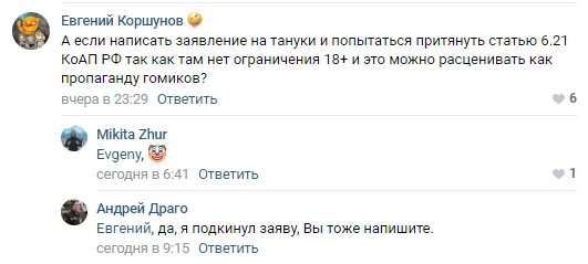 Депутат оказался не единственным, кто был недоволен действиями «Тануки». Пользователи социальных сетей размещали в аккаунтах сети ресторанов оскорбительные комментарии по поводу «радужных» аватаров и даже заявляли, что тоже жаловались в надзорное ведомство.
