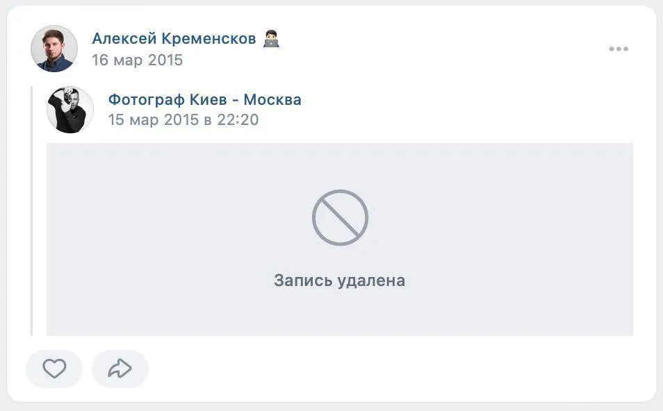 К примеру, в марте в соцсети «ВКонтакте» Кременсков делал репост публикации паблика «Фотограф Киев — Москва». Пост был удален со страницы Кременскова, когда история с продажей данных попала в инфополе.