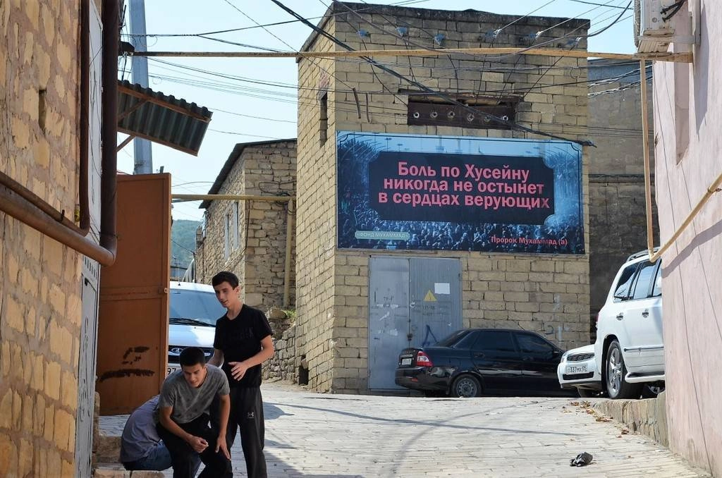 Хуссейн — это один из имамов, считающийся святым для мусульман-шиитов. И поскольку в этом районе сплошь и рядом призывы вспомнить Имама Хуссейна, то очевидно, что мы в азербайджанском квартале Дербента.