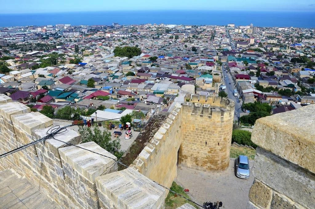 Кстати, русские надписи это не столько дань «федерализму» и «государственному языку», сколько необходимость. Дагестан — самый многонациональный регион России, а непосредственно в Дербенте представлены три основные народности: лезгины, азербайджанцы и табасараны. Четвертной по численности группой были уже упоминавшиеся горские евреи, но сегодня большинство из них эмигрировали в Израиль и их численность в городе не превышает тысячи человек. Так вот, у всех этих народов свои языки и культура и единственным связывающим их языком является русский. Вы конечно можете размещать вывески на азербайджанском, но кто вас поймет, кроме соседей? Дербентская крепость уникальная по меркам России, ибо нигде больше в стране нет столь больших крепостей не русского происхождения. Этой крепости порядка 1500 лет и заложена она была персами из династии Сасанидов.