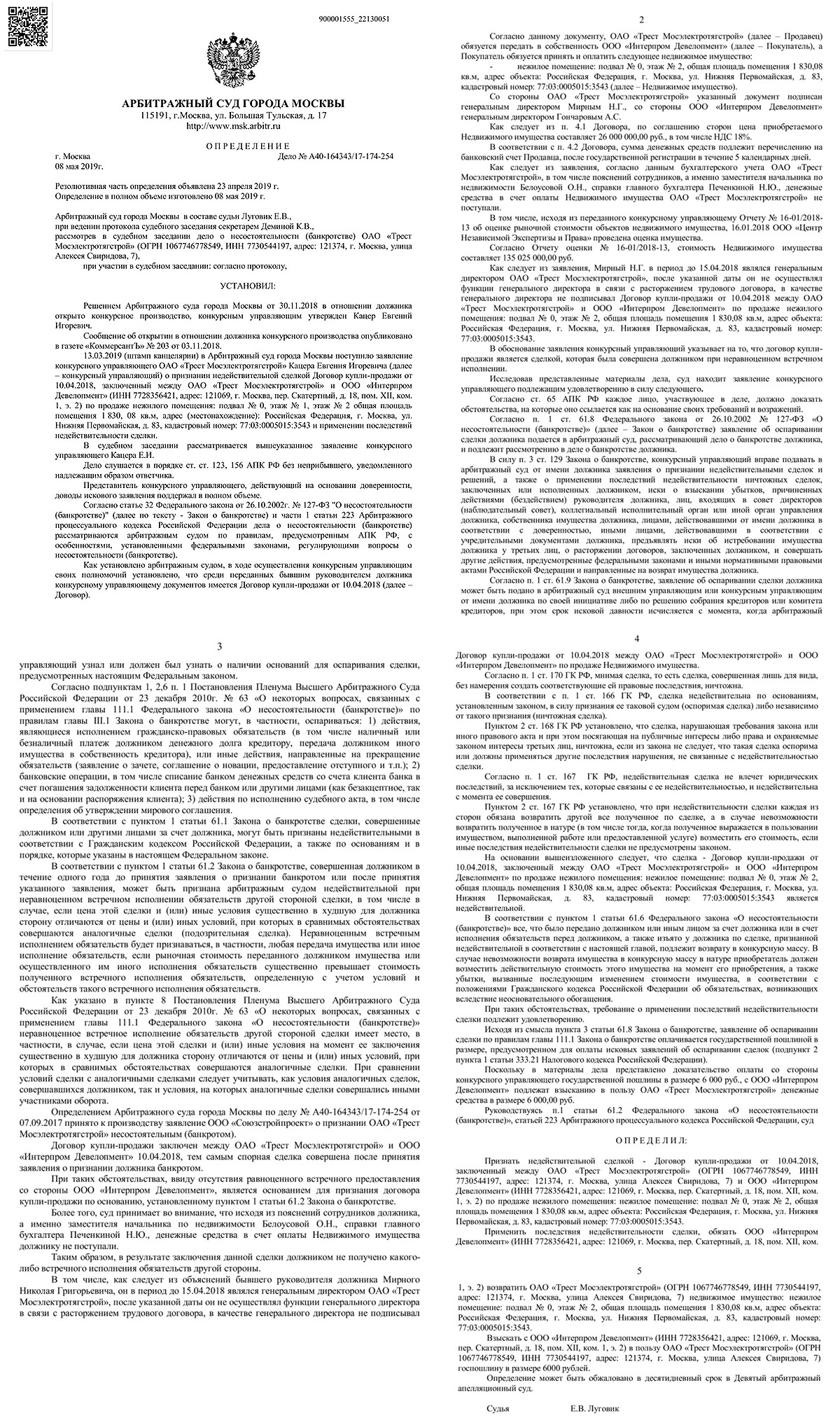 В связи с этим я обращалась в Департамент городского имущества города Москвы, чтобы они обратились с иском к конкурсному имуществу, чтобы передали здание городу и было найдено какое-то законное решение, но в ДГИ мне ответили, что сначала этим должно заниматься Росимущество. И после того, как будут совершены какие-то действия, федералы смогут передать Москве, но в Росимуществе бездействуют, — резюмирует Янчук.