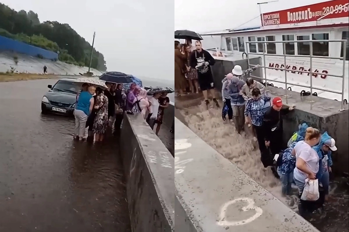 В Городце Нижегородской области детям-инвалидам пришлось полчаса провести под проливным дождем в ожидании экскурсии на теплоходе.