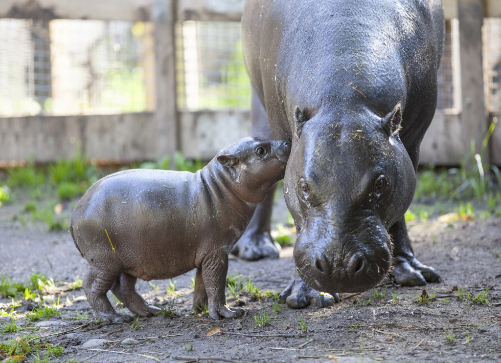 Детёныш карликового гиппопотама родился в шведском зоопарке