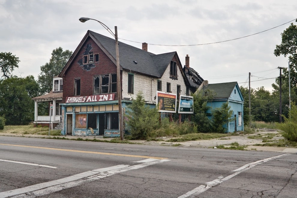 Детройт сегодня – настоящий город-призрак. Около 78 000 его зданий заброшены, а почти 40% уличных фонарей обесточены. По одну сторону некоторых городских улиц ярко горят витрины дорогих магазинов, по другую - стоят здания с разбитыми стеклами, из стен которых прорастают деревья.