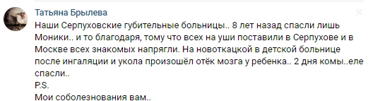 Жители Серпухова в целом вторят потерявшим дочь родителям. Многие припоминают собственные истории о халатности и меркантильности местных служителей медицины.