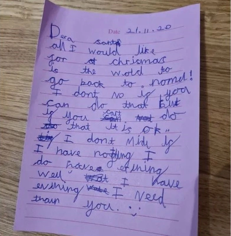 Девочка написала трогательное письмо для Санты, но просила не о подарках