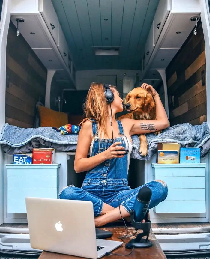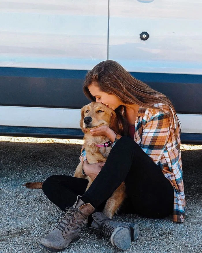 Девушка бросила парня и работу, чтобы путешествовать в фургоне с собакой