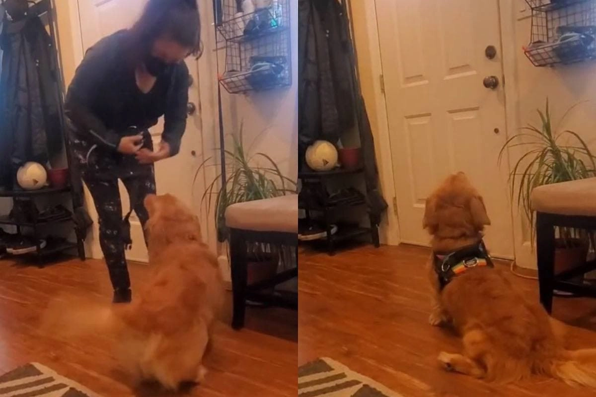 Хозяйка песеля по кличке Доджер решила разыграть своего питомца, притворившись, что не берет его гулять на улицу. Девушка подготовила хорошего мальчика к прогулке, но в самый важный момент просто оставила того сидеть у входной двери. Реакцию собакена она записала на видео.
