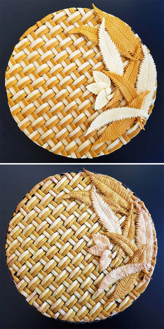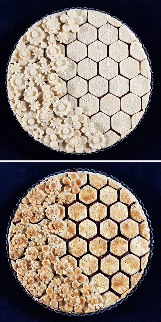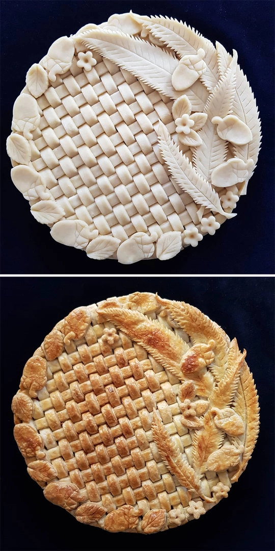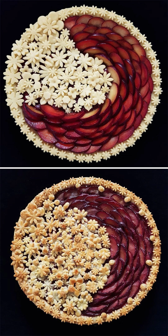 Девушка печет бесподобные пироги, похожие на произведения искусства