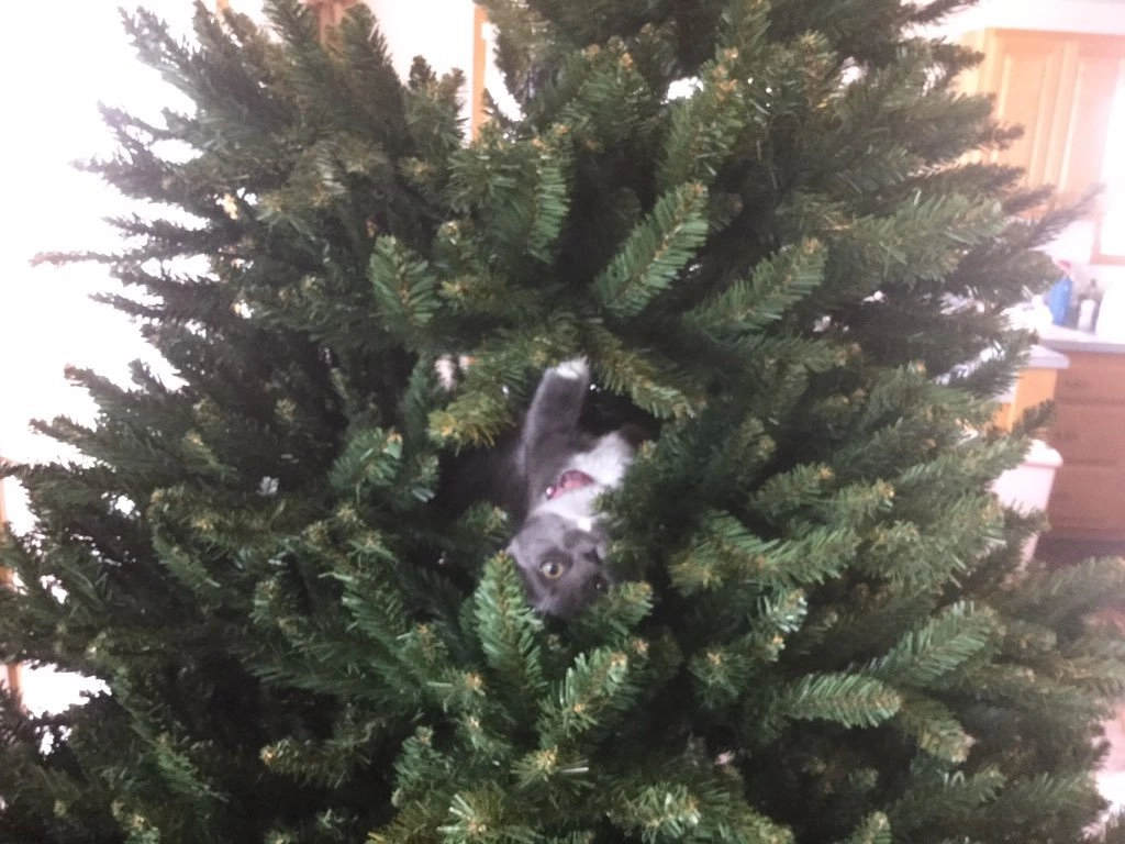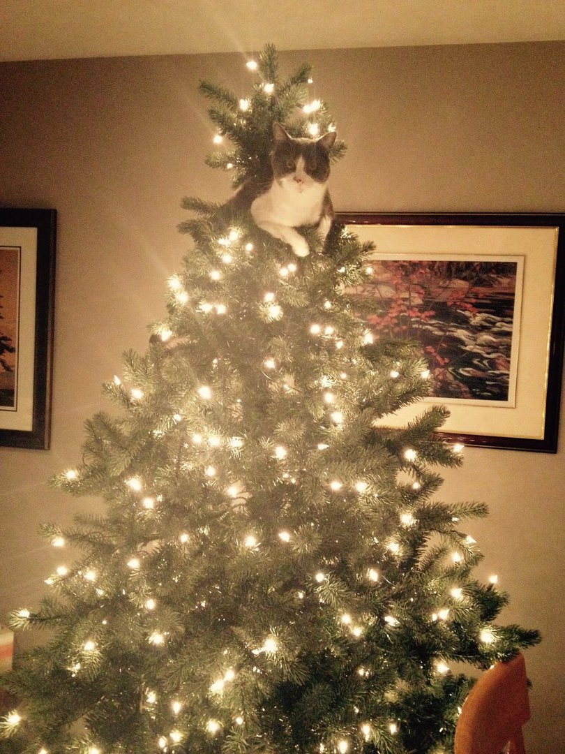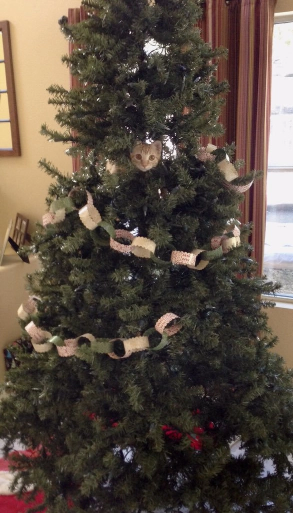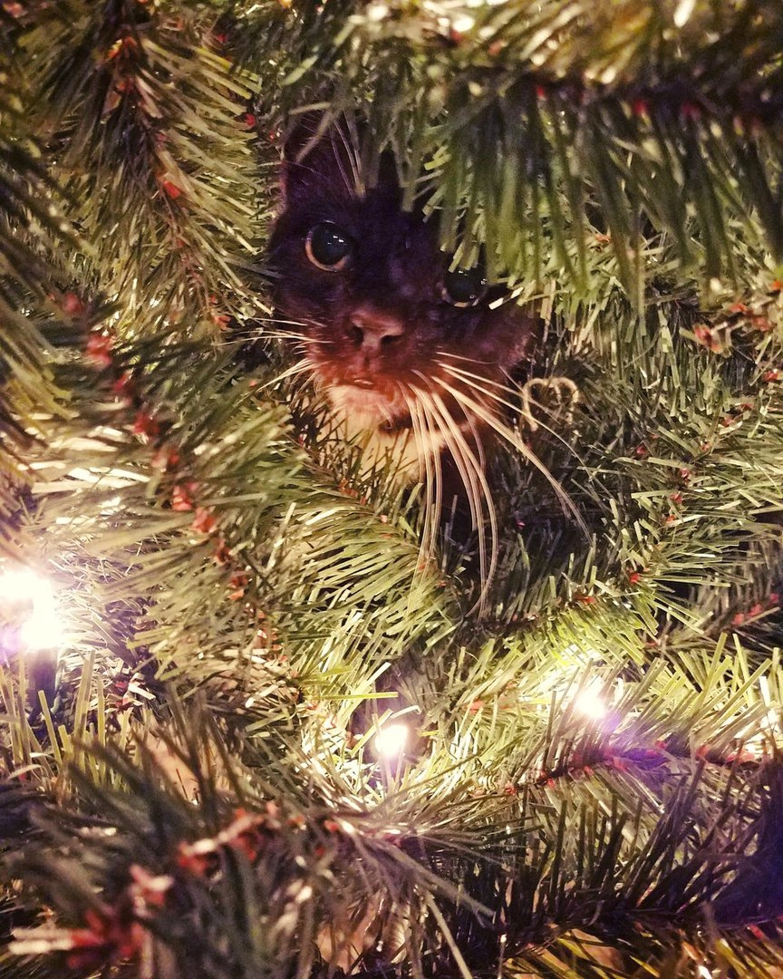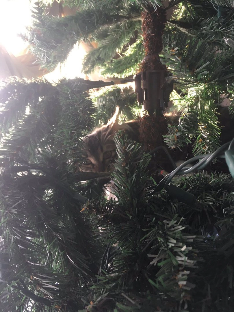 Все мы знаем, что коты просто обожают новогодние ёлки. А если им удаётся уронить нарядное дерево на пол, то всё — кошачья миссия выполнена. Хозяйка одного пушистого хулигана Алли Макдоналд (Alli McDonald‏) опубликовала в Twitter фотографию своей ёлки и попросила интернет-сообщество помочь найти на ней котика.