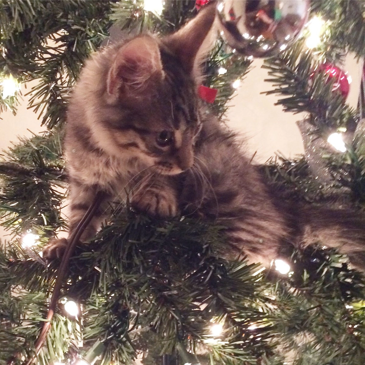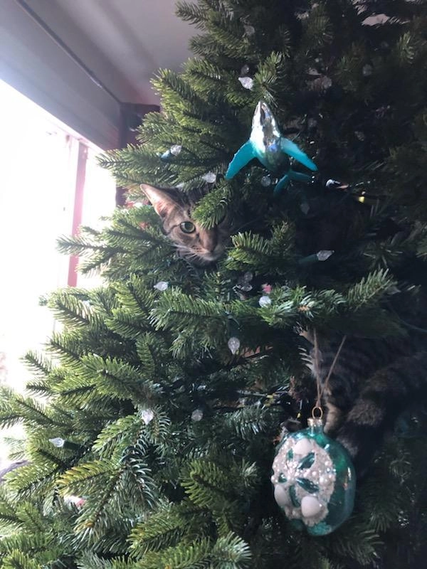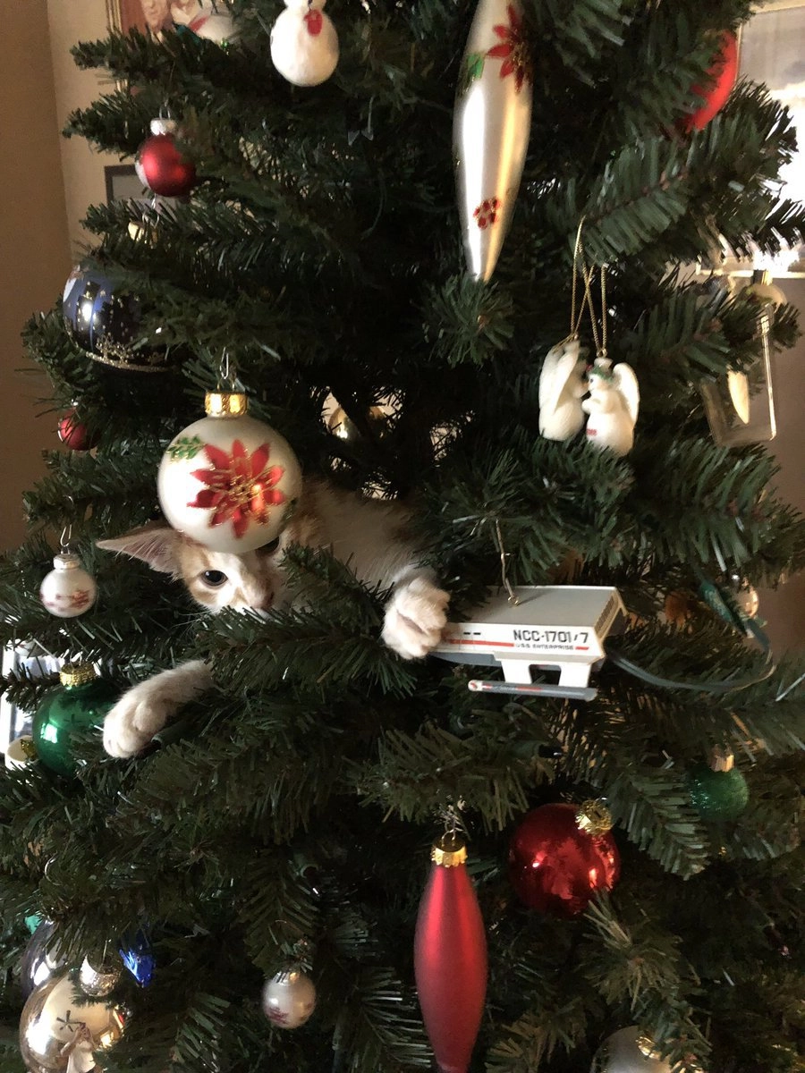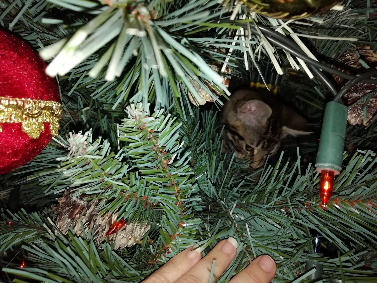 Все мы знаем, что коты просто обожают новогодние ёлки. А если им удаётся уронить нарядное дерево на пол, то всё — кошачья миссия выполнена. Хозяйка одного пушистого хулигана Алли Макдоналд (Alli McDonald‏) опубликовала в Twitter фотографию своей ёлки и попросила интернет-сообщество помочь найти на ней котика.