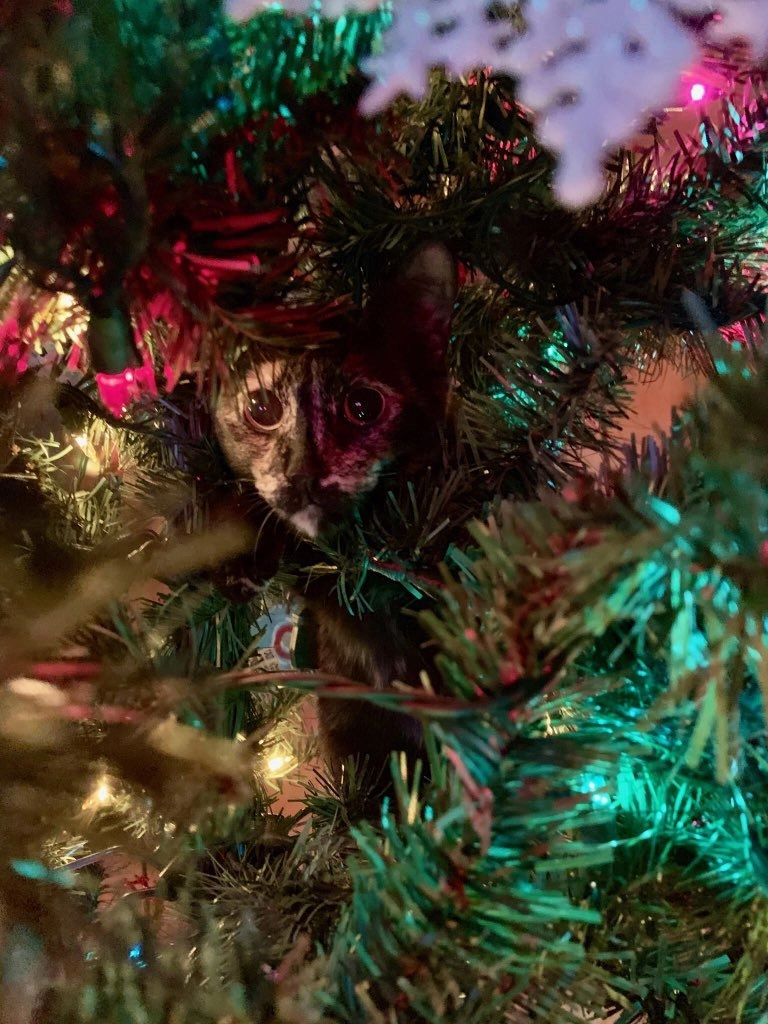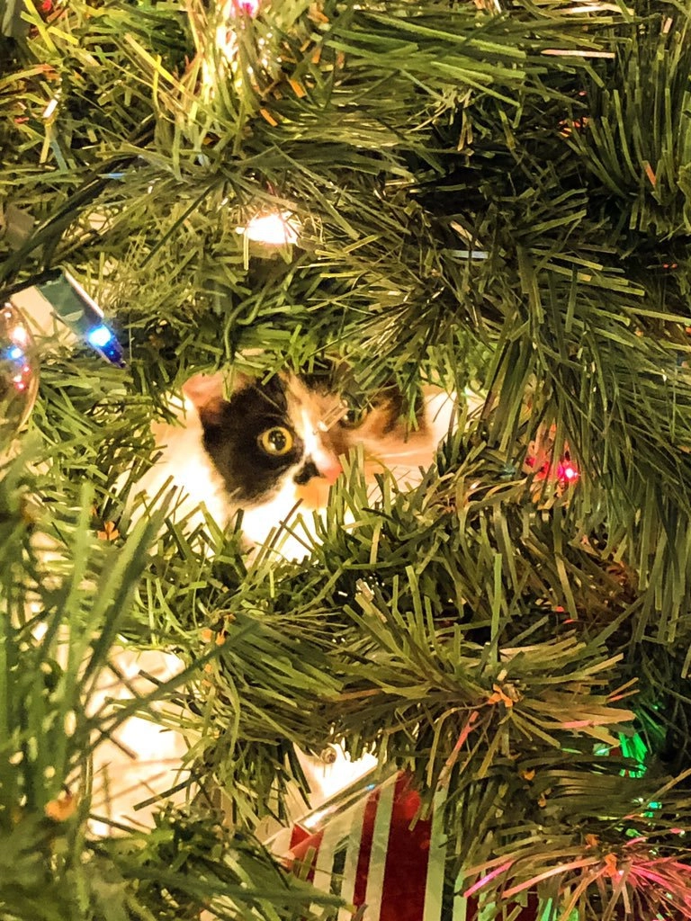 Айда, ребята, давайте сыграем в игру: каждое утро мы находим нашу кошку в разных местах на рождественской ёлке и фотографируем. Сделайте скриншот, когда найдёте её, — написала девушка.