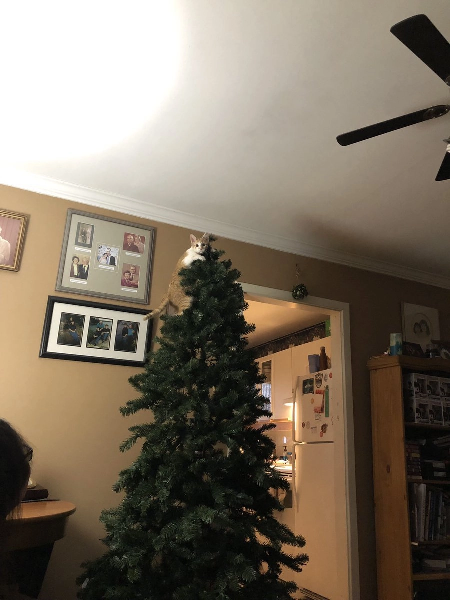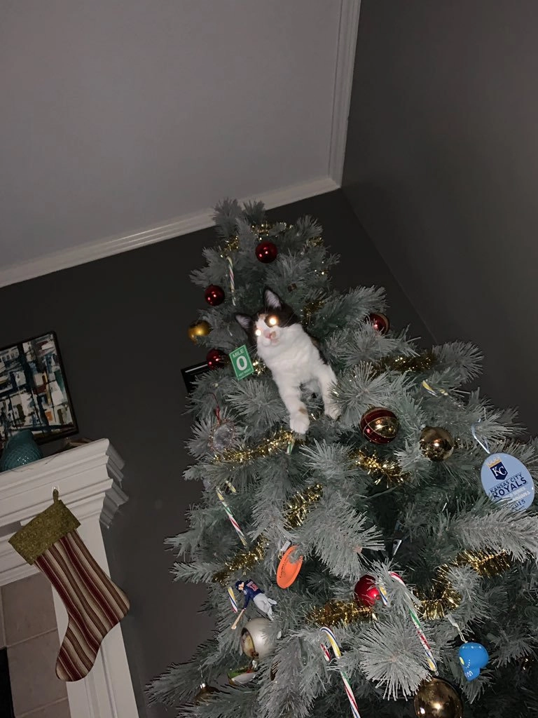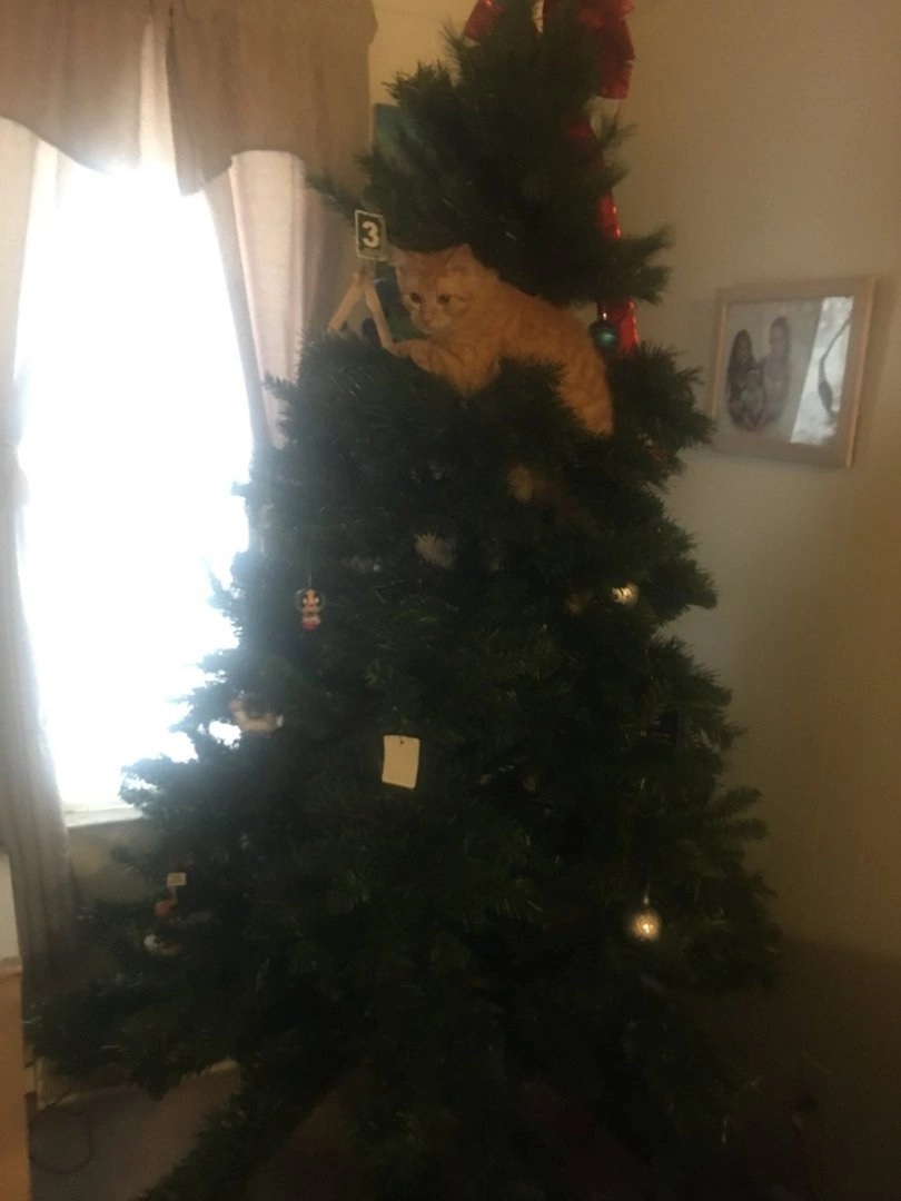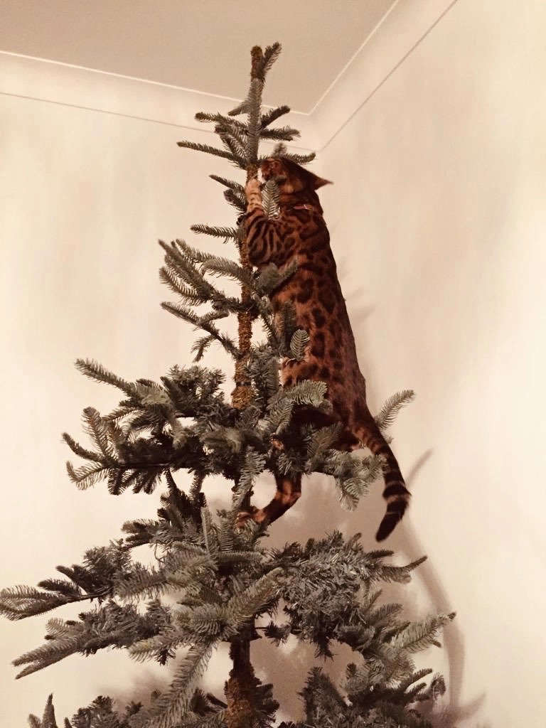 А ваши коты любят забираться на ёлку?
