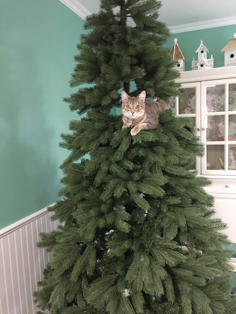 Пользователи не только охотно поучаствовали в игре, но и запустили стихийный флешмоб, прислав множество фотографий своих питомцев, нагло сидящих на новогодних ёлках. И если одних котов не так просто отыскать на деревьях, то, глядя на некоторых, остаётся только удивляться их кошачьей наглости и сноровке.