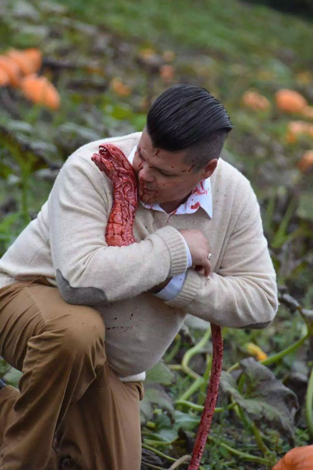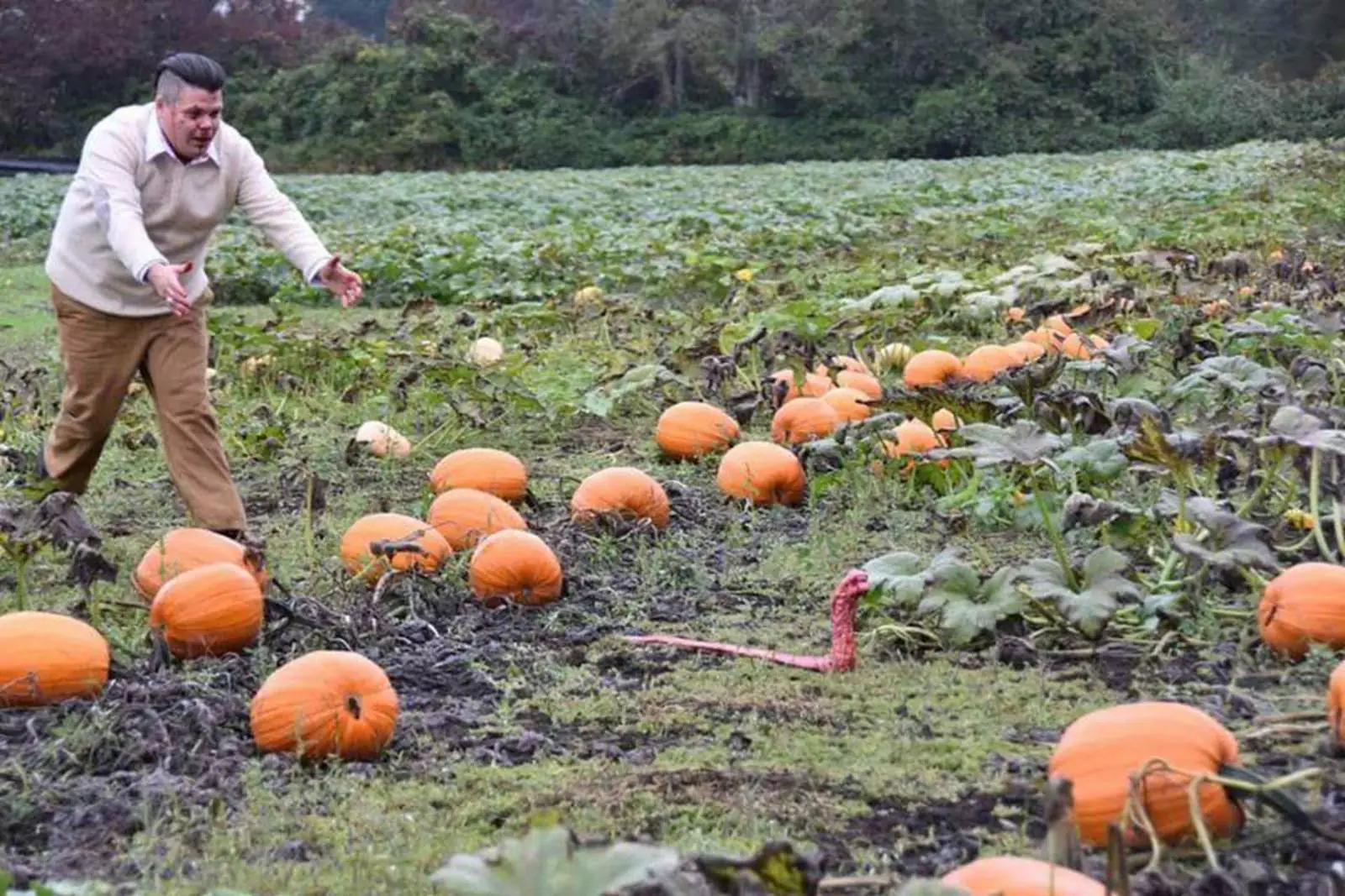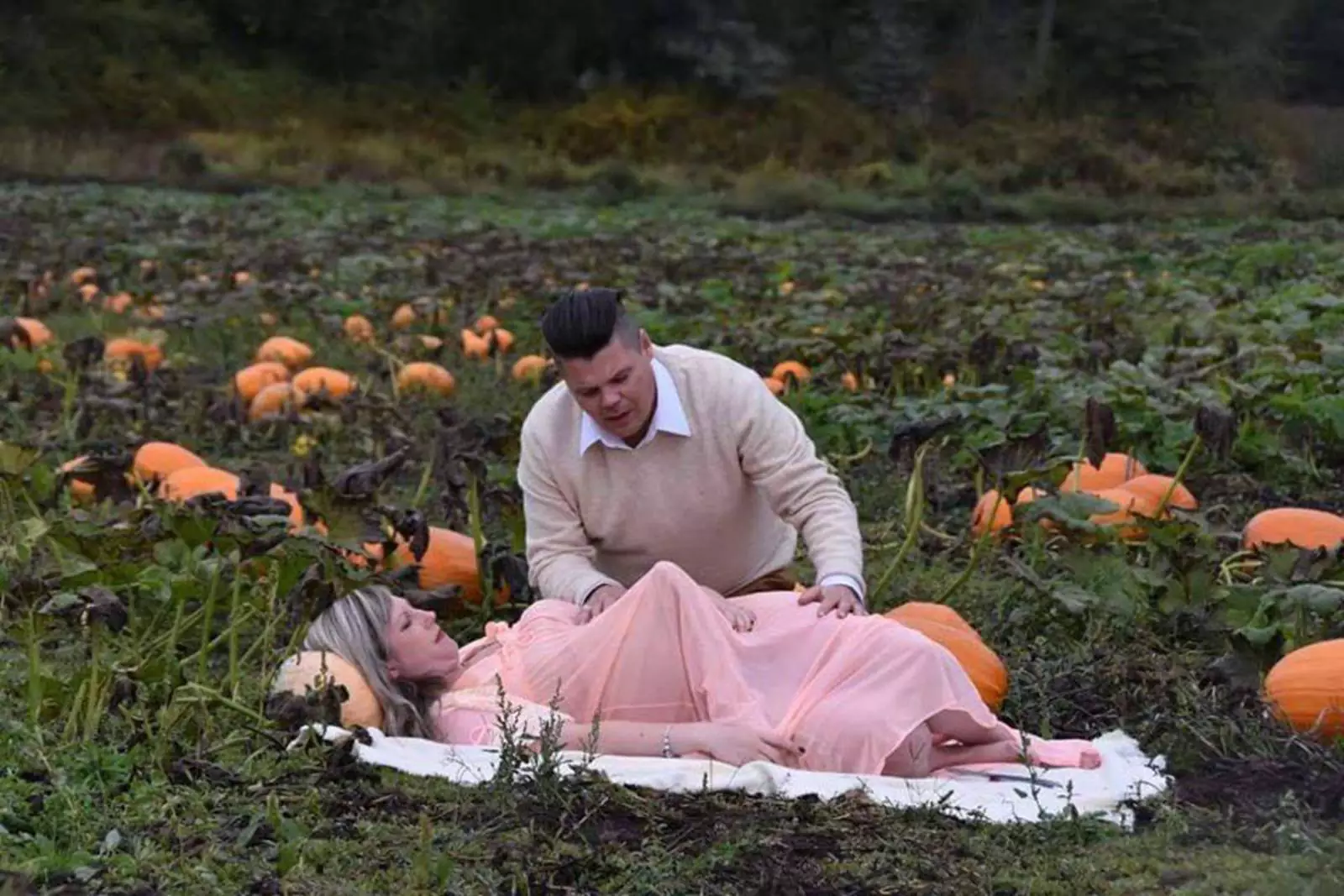 Пара покрасила пластиковую модель из «Чужого», нашла фотографа, согласившегося воплотить идею супругов в жизнь, и отправилась на фотосессию. Местом для съемки стало поле с тыквами. Результат получился жутковатым, но очень зрелищным.