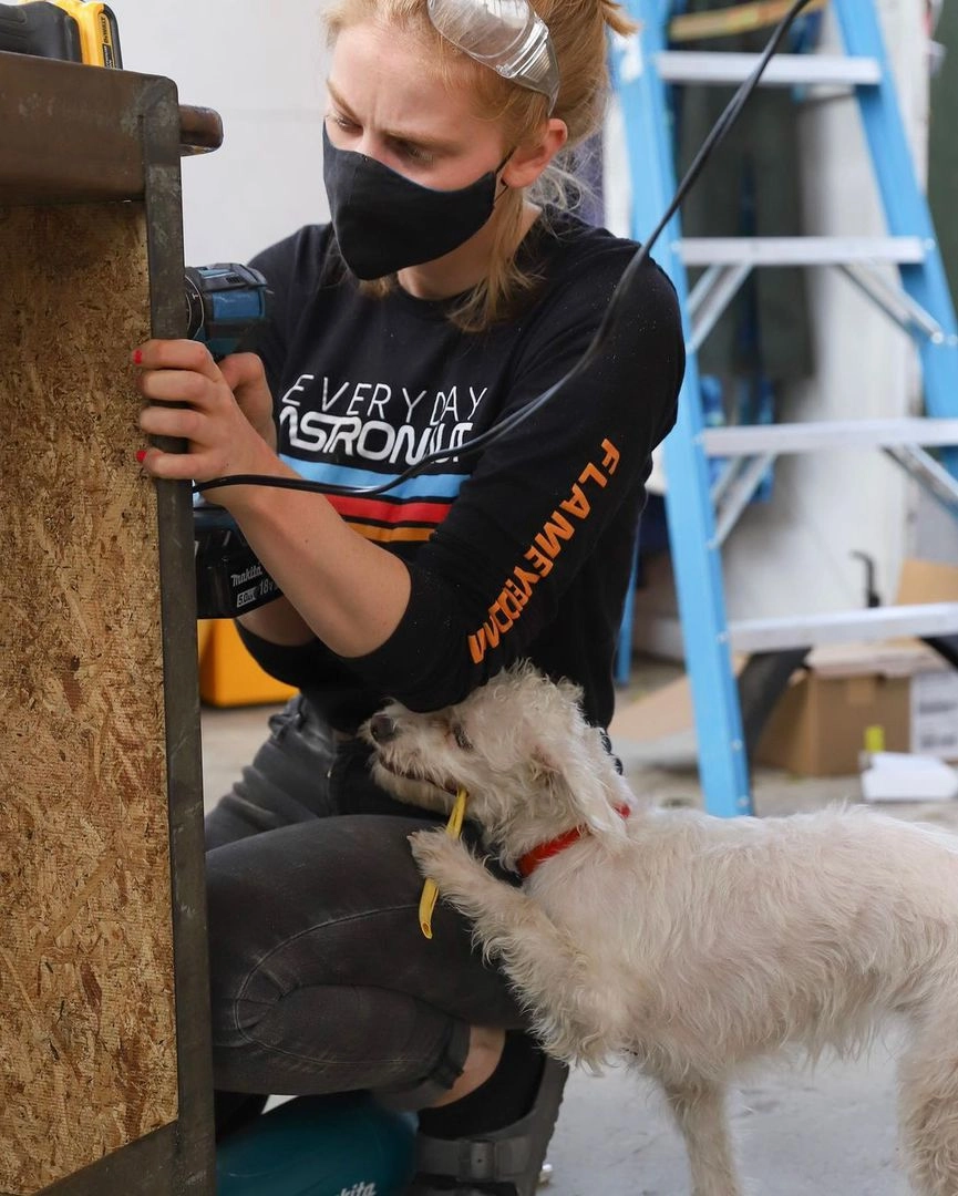Девушка сделала удобный стул, позволяющий питомцам сидеть рядом с хозяевами