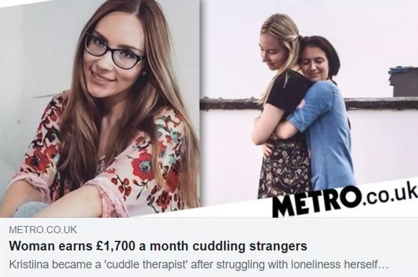 30-летняя жительница Лондона Кристина Линк чувствовала себя изолированно после расставания с возлюбленным и нуждалась в поддержке. Однажды девушка подумала, что очень хотела бы обнять кого-то, но у нее не было такой возможности. Тогда в голову Кристины пришла идея о создании сервиса для объятий, который будет помогать людям справляться с одиночеством, тревогой и симптомами депрессии.