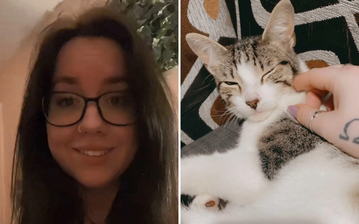Девушка была немного сбита с толку присутствием кошки, но была рада ее компании