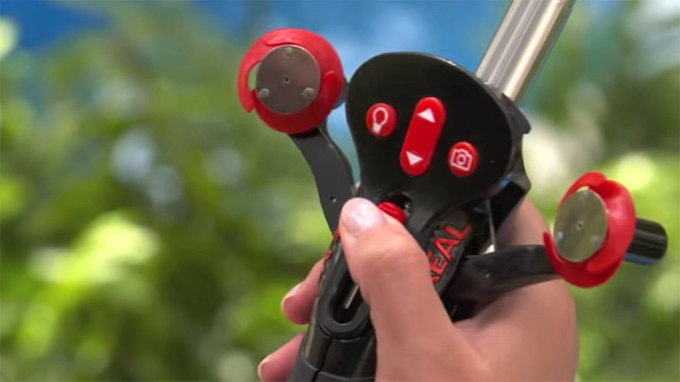 Футуристическая селфи-палка даст возможность создавать очень эффектные «себяшки». После нажатия на кнопку телескопическая конструкция раздвигается, чтобы в кадр поместилось больше объектов.