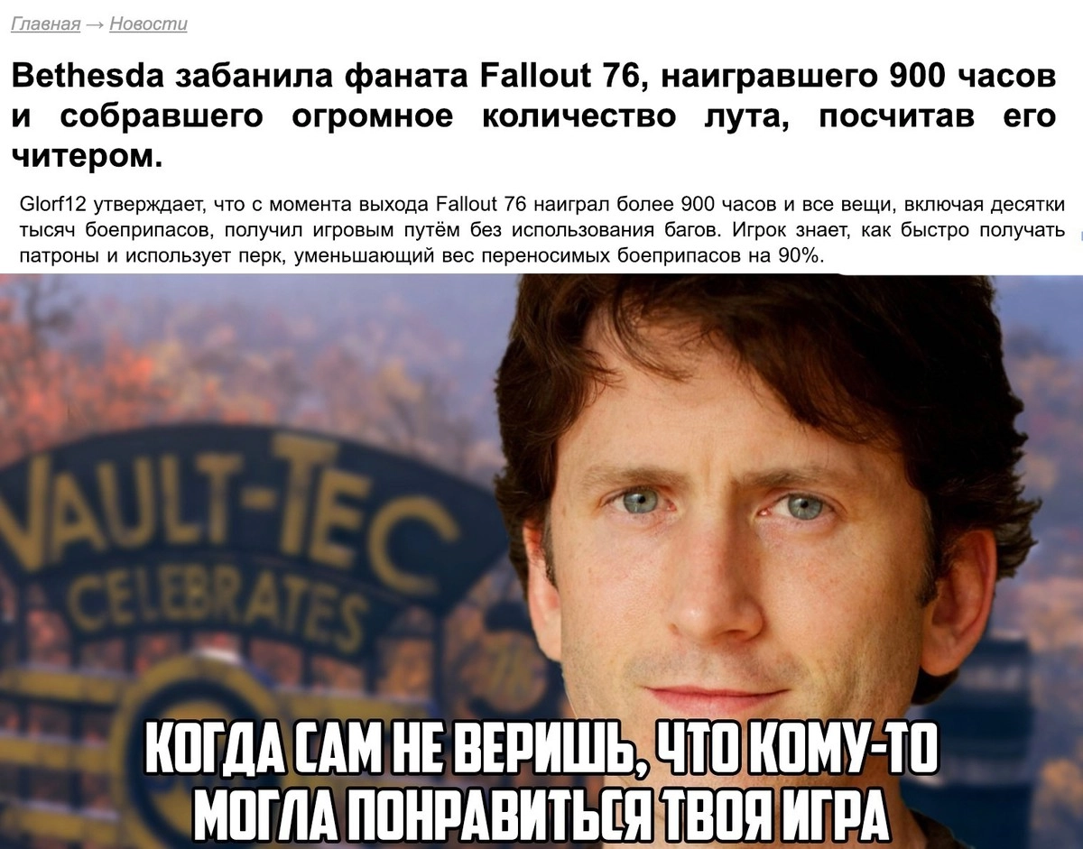 Fallout 76 стала у геймеров игрой-мемом: она изобиловала техническими проблемами, а запуск её иначе как шероховатым не назовешь. Игровой мир вышел пустым и мертвым, что совершенно не было похоже на типичные проекты от Bethesda. Количество геймерских мемов по этому поводу уже давно зашло за тысячи: