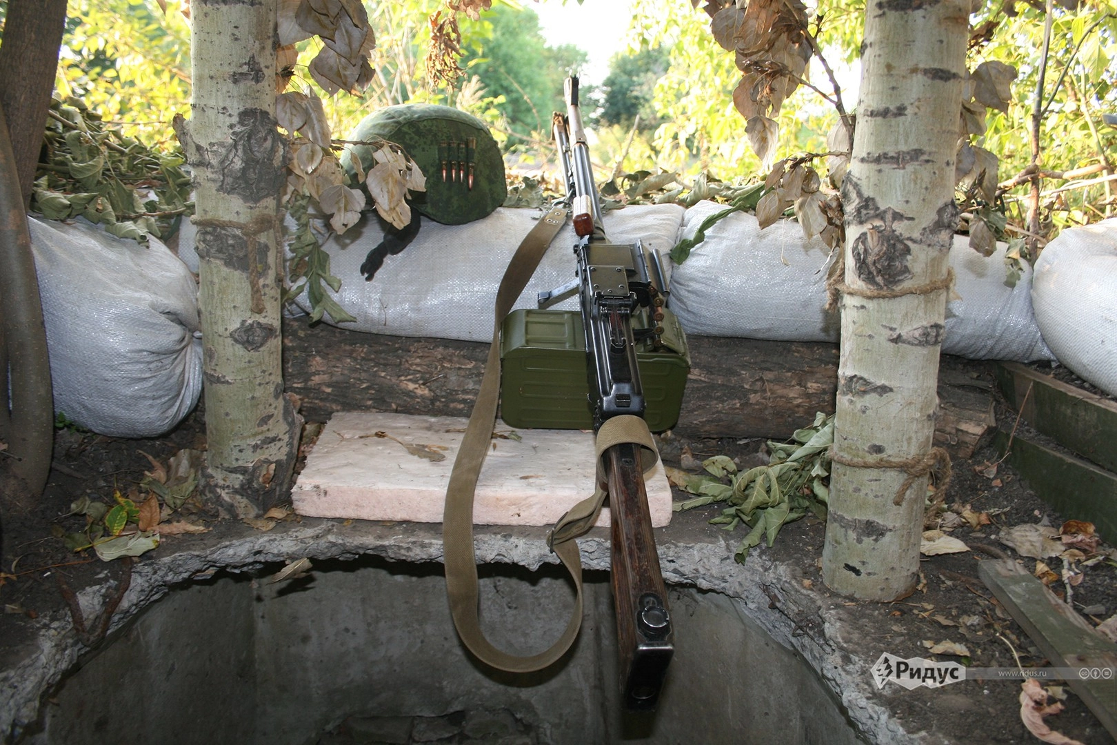 — Меньше стали стрелять. По городу, по Первомайску перестали, но все равно стреляют по позициям. Выезжают, из-под террикона стреляют. Как бы перемирие, и им этого не разрешается, но все равно. Один раз они могут отсюда выстрелить, один раз со своих укрепрайонов, но стреляют. Применяются пулеметы, стрелковое бывает, бывает и подствольники, бывают и АГСы, — рассказывает боец Баха из 18-го батальона территориальной обороны.