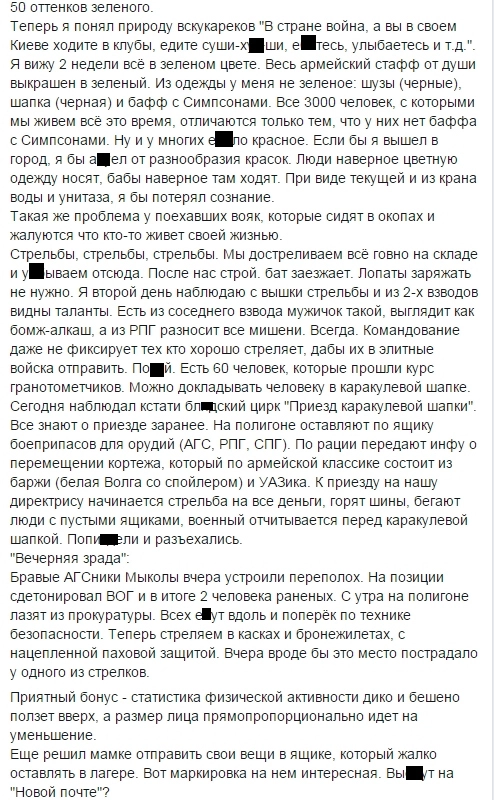 Тексты и фотографии были размещены автором в открытом доступе в социальной сети Facebook и публикуются мной в качестве информации о состоянии украинской армии: