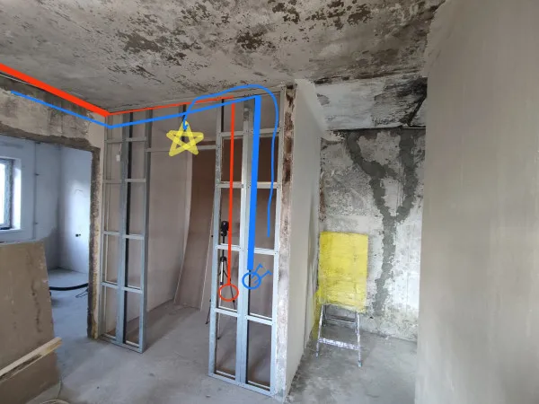 Вопрос в следующем: как правильно заложить кабели в перегородку для освещения гардеробной и для розетки?