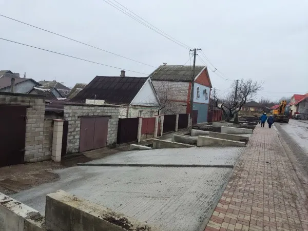 По периметру нового микрорайона — частный сектор. К частным домам, которые находятся ниже, чем уровень новостроек, сделали ступени и въезды в гаражи.