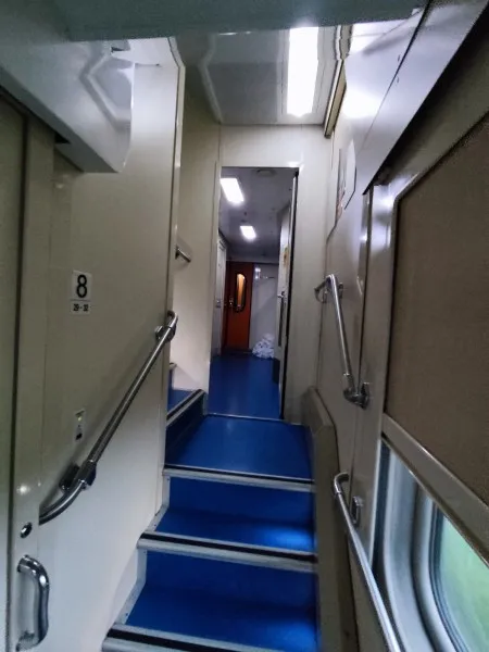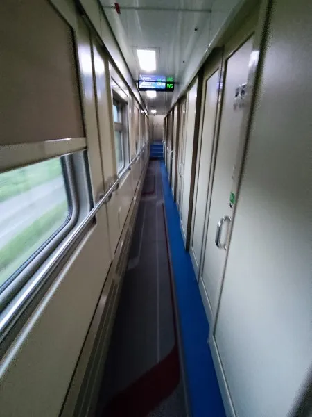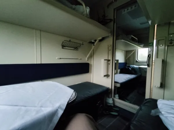 Синдром жертвы Укрзалізниці даёт о себе знать. Нас так долго приучали довольствоваться малым и быть счастливыми, не возмущаться и ничего не требовать. Не будучи избалованной комфортом от Укрзалізниці, я не рассчитывала на особенные условия и тут. Вошла в свое купе с намерением сразу же улечься спать, но вместо этого начала чудить. Телефон разряжен! Где бы найти рабочую розетку? Конечно в купе проводников, как во всех нормальных поездах Украины! Туда я и направилась добывать электричество, вероятно, надеясь обнаружить там кучу переносок, куда можно было бы воткнуться до утра… Какою же неожиданностью для меня было узнать, что у меня в купе есть и индивидуальная розетка, и подсветка, и даже вайфай! Ещё большим сюрпризом оказалось чистое и сухое постельное белье, а также чай или кофе в любое время дня или ночи. Что такое? Неужели нам здесь рады?