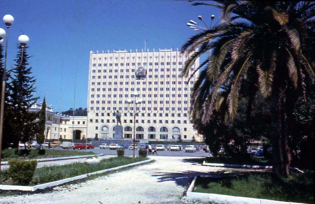 Дом правительства расположился в самом центре столичного Сухуми, как и положено. Помпезное сооружение сталинской и брежневской архитектуры, символ процветающей Абхазии.