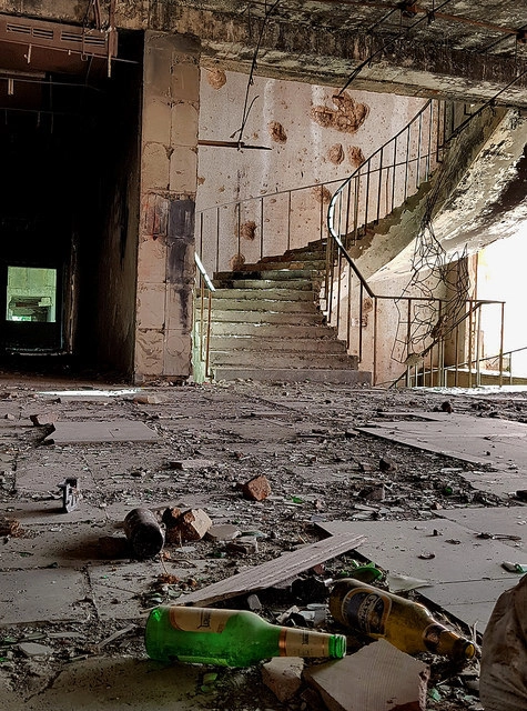 Внутри всё осталось примерно так же, как и было после штурма 27 сентября, за исключением полного грабежа. Даже плитку умудрились посбивать и унести хозяйственные соседи, никто им не помешал.