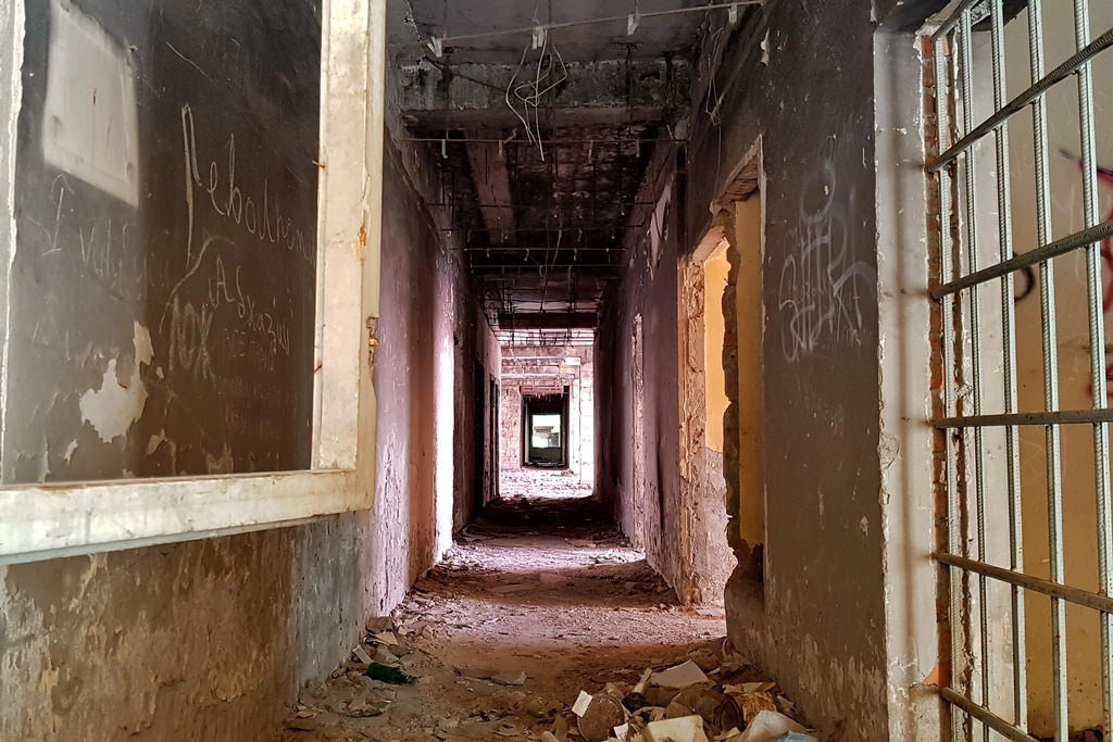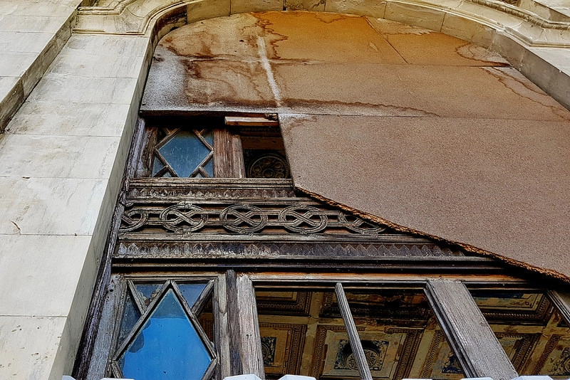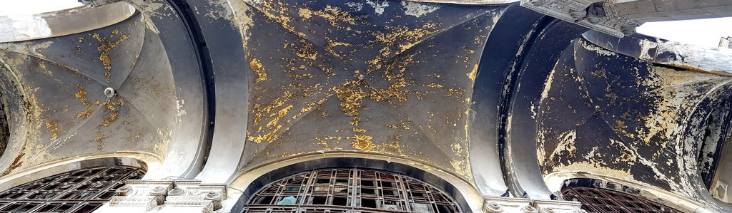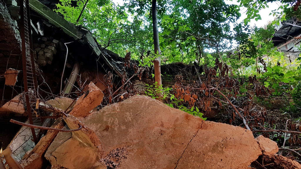 К сожалению, 25 лет опустошения не прошли даром, внутренний холл обвалился и зарос деревьями.