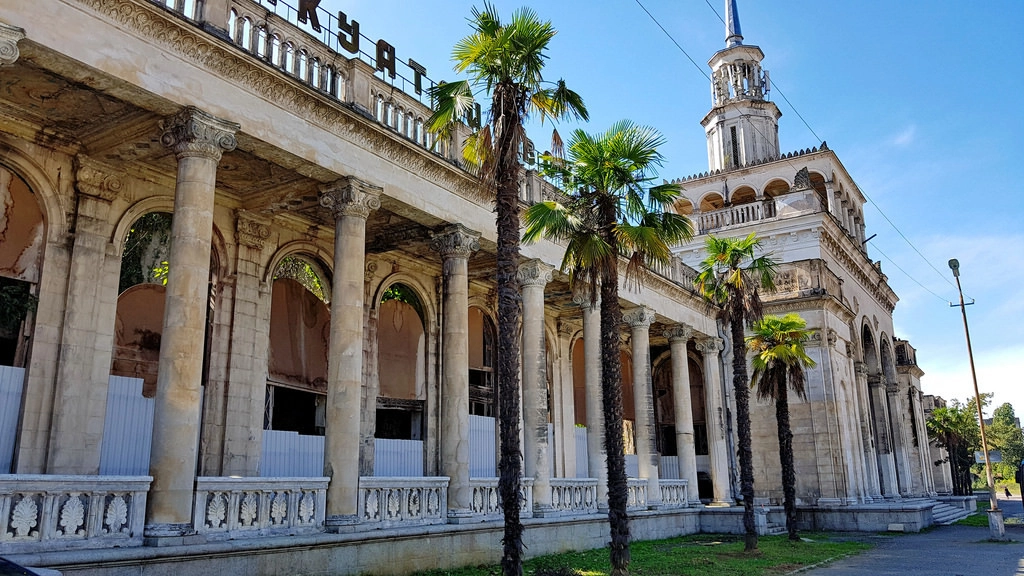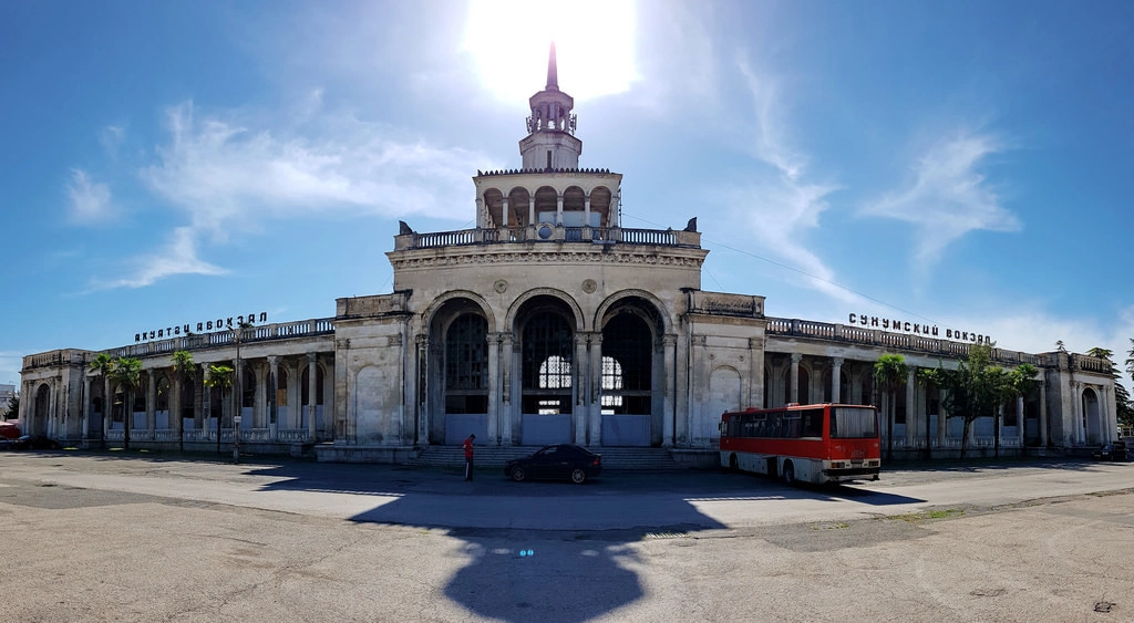 Направляюсь к вокзалу, пора уезжать в Гагры — город, где я отдыхал ещё при СССР, подростком. Подошёл поближе и обомлел — вот это красота! Увы, бывшая.