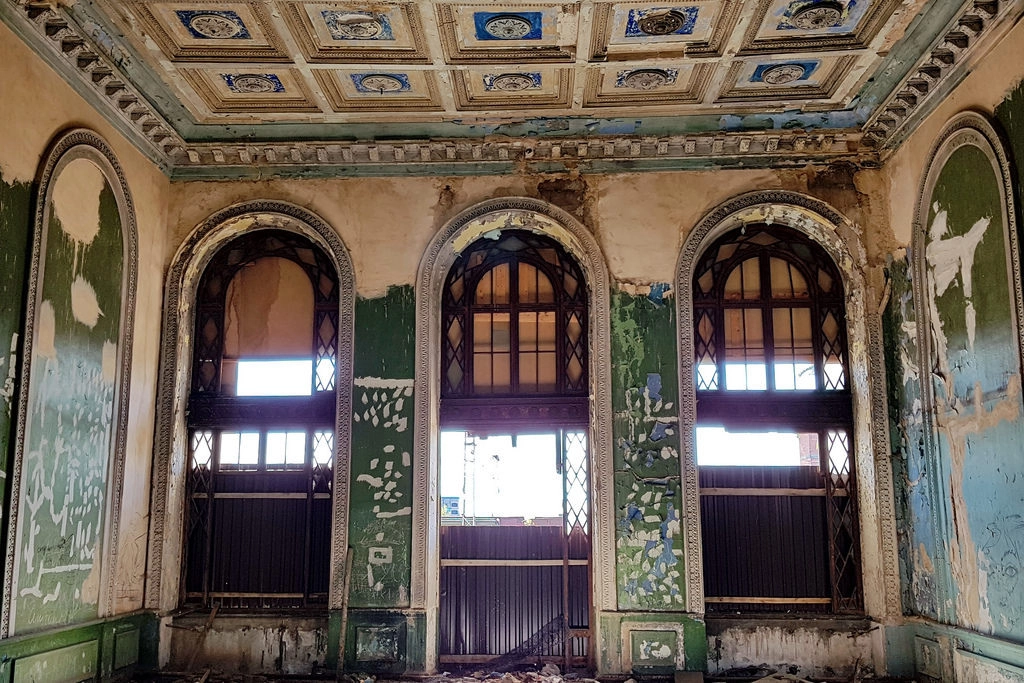 Посмотрите, какие классические коринфские колонны украшали здание. Плюс лепнина на потолках, роспись и прочие навороты. Такие шедевры обязаны охраняться государством, если оно действительно государство, а не сомалийский бантустан.