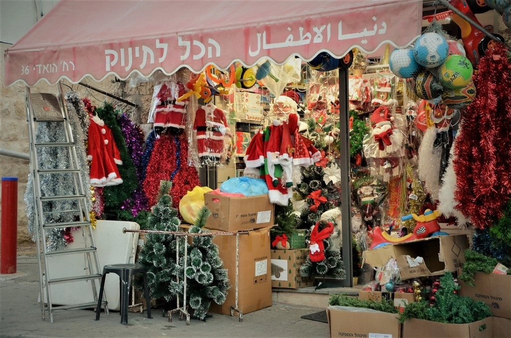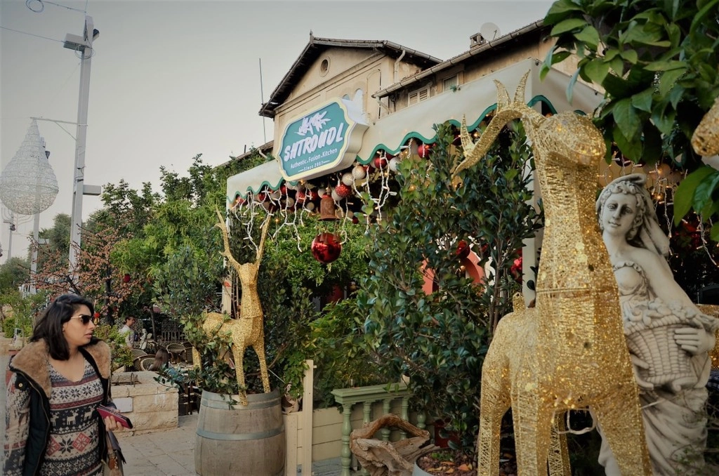 Большинство ресторанов здесь держат арабы-христиане, они же и живут в бывших немецких домах. Новогодняя атмосфера во всем —