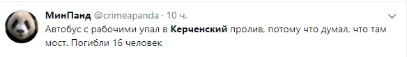 В трагедии на Кубани некоторые пользователи с Украины усмотрели повод для шуток. Несмотря на то что авария, в которой погибли 18 человек, произошла на строящемся пирсе, блогеры пишут, что автобус упал с Крымского моста.