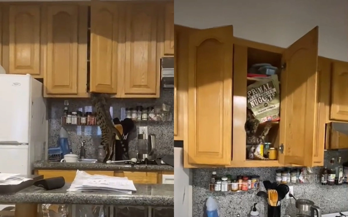 Пользователь TikTok под ником jake.the.savannah поделился роликом со своим невероятно самостоятельным котом по кличке Джейк, который легко может достать сухой корм из шкафа без чьей-либо помощи. Котейка ловко запрыгивает в шкаф, аккуратно берет пачку корма зубами, а потом скидывает вниз. При этом хвостатый умудряется не устроить хаос на кухне и не сбрасывает на пол все, что попалось под лапки. Такой кот стал бы просто бесценным, если бы еще и лоток за собой убирать научился.