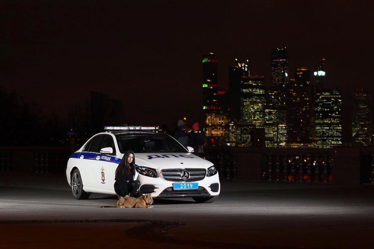 Дочь бизнесмена устроила фотосессию со львенком и машиной ДПС
