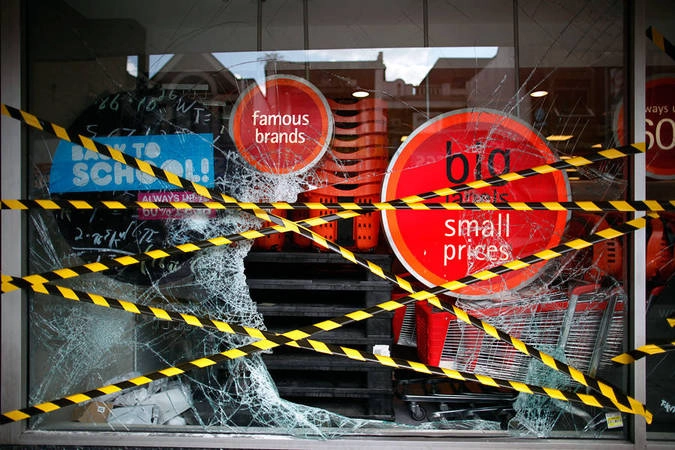 Разбитая мародерами витрина одного из магазинов Лондона. © Elizabeth Dalziel/AP Photo