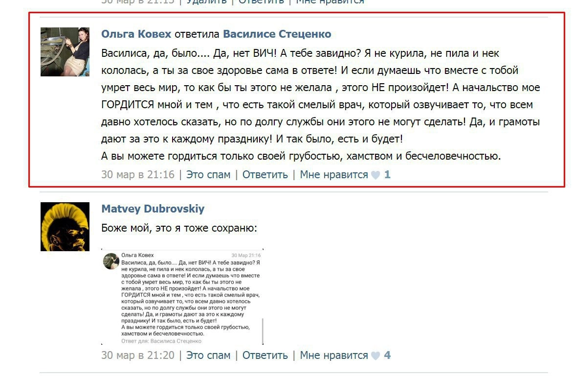«Я не могу спокойно смотреть на убийство людей и тем более детей под видом их лечения. Зная о том, каким нападкам я каждый день подвергаюсь, один из знакомых сказал: „Оля, тебе нужно уезжать из этой страны“. Но у меня даже в мыслях такого не было», — говорила терапевт.